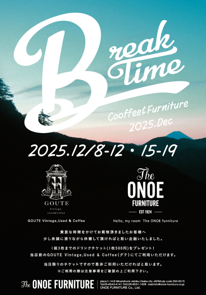 2025.12.04 お買い物のあとはスペシャリティコーヒーで至福のひとときを。【Break Time COFFEE & FURNITURE】