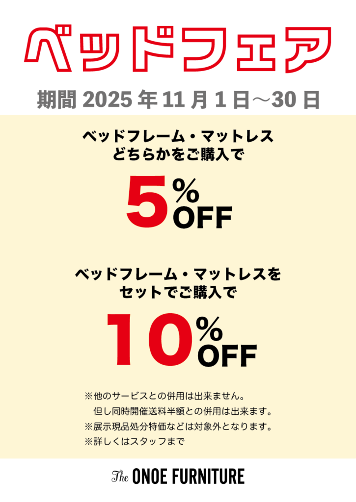 2025.11.01 11月30日(日)まで!今なら最大10%OFF!ベッドフェア開催中!