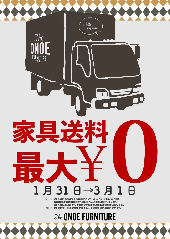 3月1日(日)まで!家具送料最大0円キャンペーン開催! - オノエファニチャー